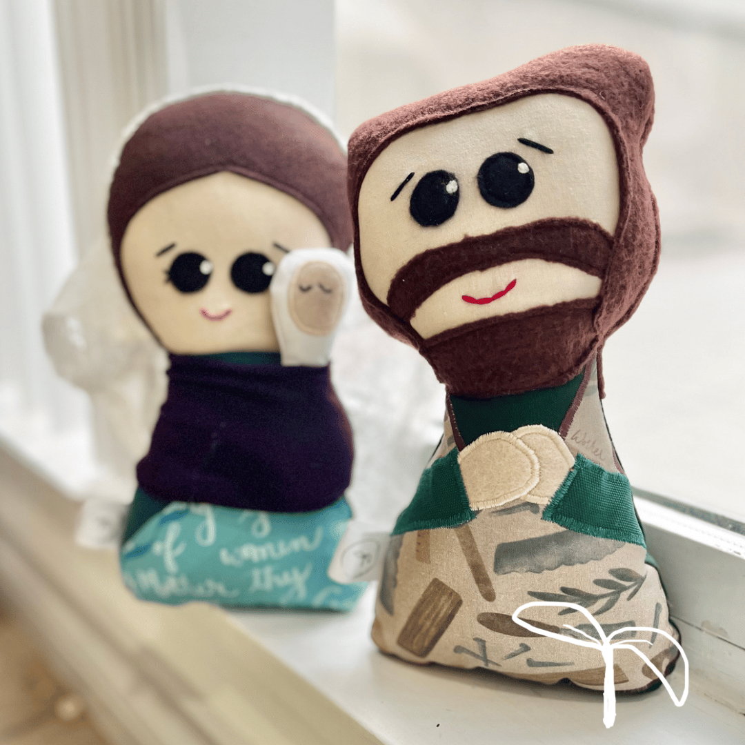 This set includes two handmade dolls - Saint Mary and her husband Saint Joseph. It also comes with a baby wrap and baby Jesus. Baby wrap and baby Jesus can be removed and transferred from Mary to Joseph and vice versa.